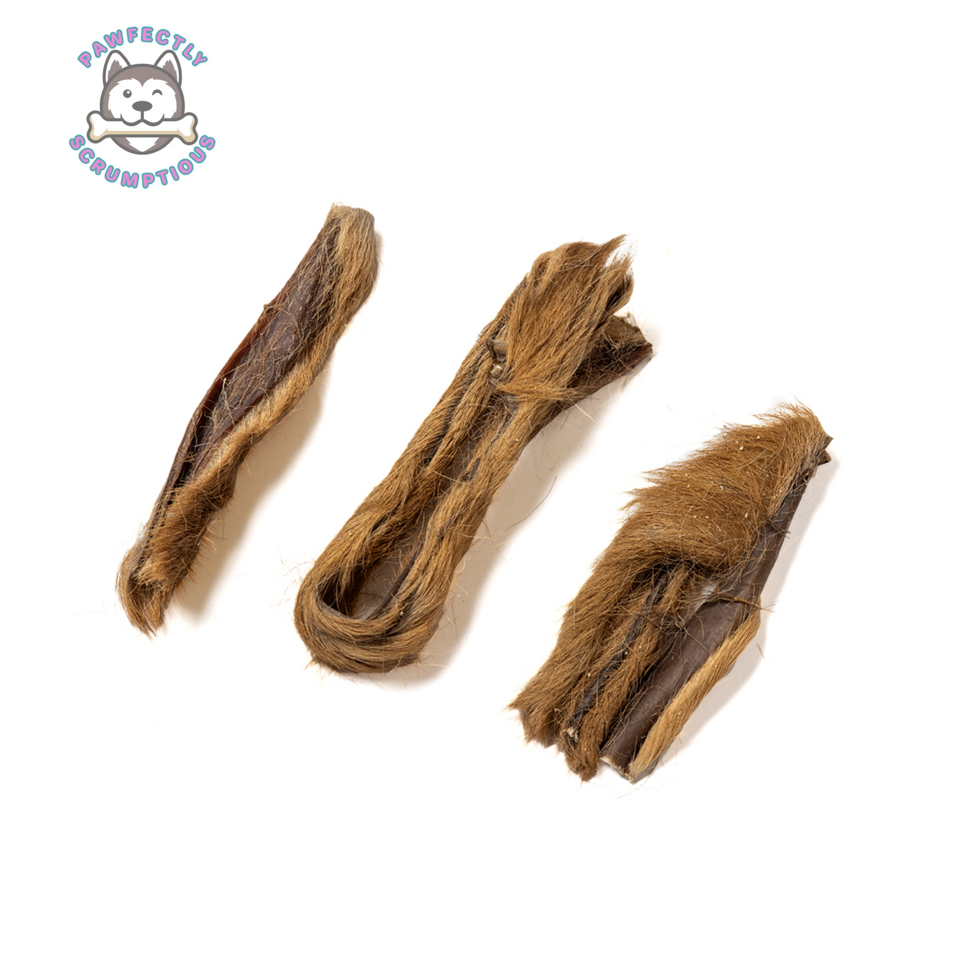 Venison/Deer Skins with Hair are crafted from 100% pure venison, offering a healthy gourmet treat suitable for dogs of all breeds and sizes.